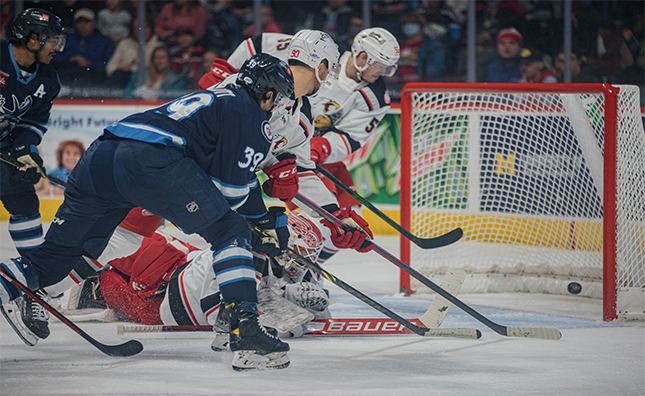 The Griffins emerged for the second period with a different netminder between the pipes, as Calvin Pickard took over for Brattstrom. Grand Rapids scored first this frame as the Moose had a breakdown in the defensive zone. That led to the 4-2 goal from Kyle Criscuolo at 9:33. Despite being outshot 10-2 by the Griffins in the middle stanza, Holm was steady and kept the Moose ahead 4-2 after 40 minutes of play. Shots on goal favoured Manitoba 21-14.