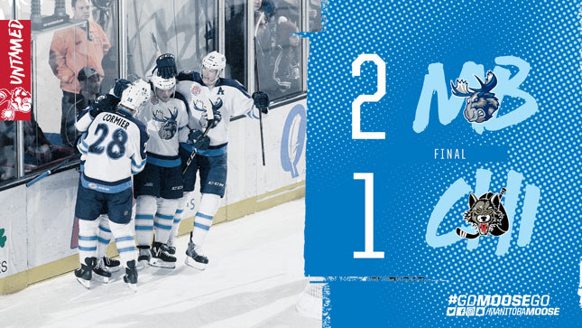 Special teams proved to be the key to the game in the third. Manitoba survived Chicago power plays at 4:25 and 10:44 of the period. Eric Comrie did his part to get the Moose through the shorthanded situations, making 12 saves in the final frame. The Moose power play had its second chance to work in the game with with 2:48 to go in the third. It took Manitoba 39 seconds to work the puck to Nic Petan for a one timer that beat Kaskisuo five-hole to give the Moose their first lead of the night. The visitors locked things down from there to capture a key regulation victory, 2-1 over Chicago.