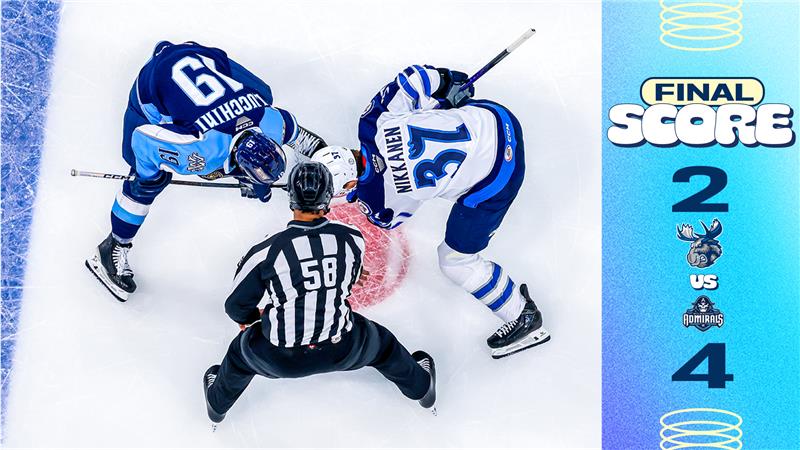 Milwaukee added to its lead when Nick Blankenburg scored on the powerplay seven minutes into the final frame to put the Admirals up 4-2. Despite a final push from the Moose, registering nine shots in the final three minutes of the period, Murray was able to keep his net clear and secure the win for Milwaukee. Milic made 20 saves on 24 shots for Manitoba, and Murray went 30 for 32 in the Admirals net.