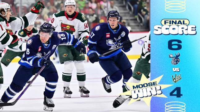 The Manitoba Moose (1-0-0-0) claimed a 6-4 win over the Iowa Wild (0-1-0-0) in their season-opener Saturday evening at Wells Fargo Arena.