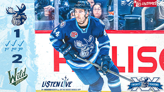 The Manitoba Moose (0-1-0) lost their first preseason game against the Iowa Wild (1-0-0) on Friday night at Ralph Engelstad Arena. The Moose came out strong as Ryan White set the tone early with a heavy hit on an Iowa defender. Both teams were awarded a power play in the first period, however neither team capitalized on the advantage. The Wild opened the scoring as Will Bitten found the net with an added assist from Luke Johnson.