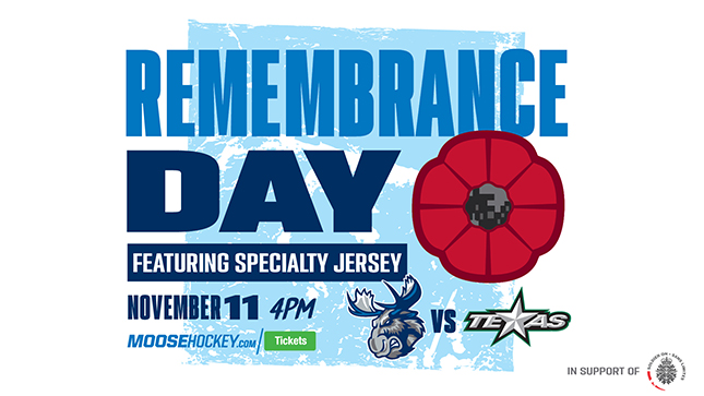 The Moose continue their long history of celebrating the military after bringing back their Military Appreciation Night for the first time last season since returning to Manitoba in 2015. This year’s game will take place on Remembrance Day with the first 3,000 fans at Bell MTS Place receiving a Canada Remembers pin.