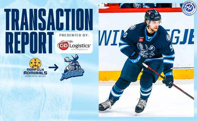 The Manitoba Moose Hockey Club announced today the team recalled forward Thomas Caron from the ECHL’s Norfolk Admirals.