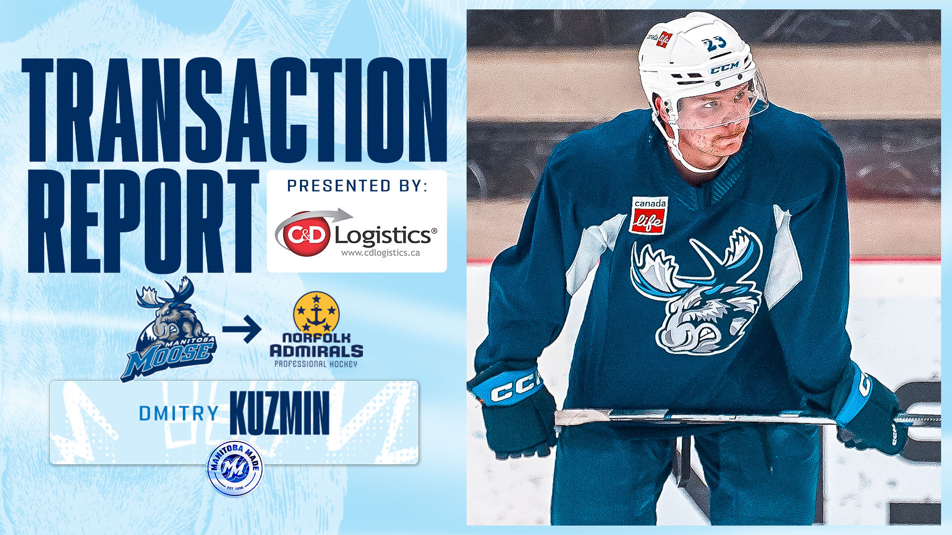 The Manitoba Moose Hockey Club announced today defenceman Dmitry Kuzmin was assigned to the ECHL’s Norfolk Admirals.