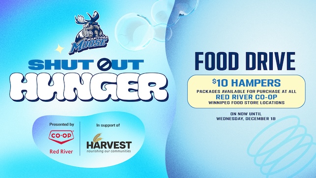 The Manitoba Moose Hockey Club announced today the launch of its 10th annual Shut Out Hunger food drive, presented by Red River Co-op, in support of Harvest Manitoba.