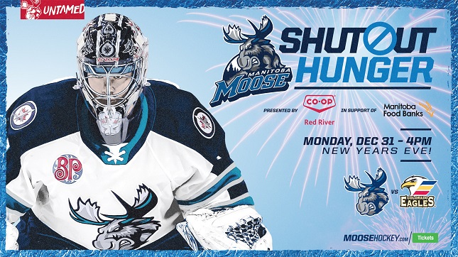 Winnipeg, December 19, 2018 - The Manitoba Moose Hockey Club is proud to host its annual Shutout Hunger food drive, presented by Red River Co-op, in support of the Manitoba Association of Food Banks. This season's Shutout Hunger game takes place Monday, Dec. 31 at 4 p.m. when the Moose host the Colorado Eagles.