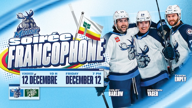 The Manitoba Moose Hockey Club is proud to host Soirée Francophone on Friday, Dec. 12 at 7 p.m. when the Moose welcome the Iowa Wild to Canada Life Centre.