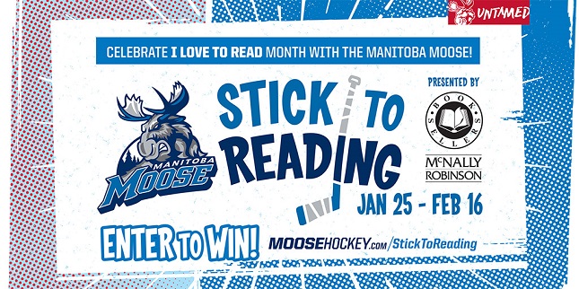 Winnipeg, MB – The Manitoba Moose Hockey Club, in conjunction with I Love to Read Month, is proud to announce Stick to Reading, presented by McNally Robinson Booksellers, is back for its third year. Stick to Reading is a program designed to encourage and promote literacy to youth in our community. Students and teachers from local schools can enter their class for a chance to win a visit from Manitoba Moose players. During the visit, Moose players will interact with and read to students in their classroom.