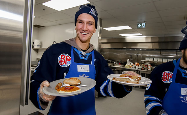 In addition to his solo efforts, Stoykewych was a consistent participant in team community functions. Stoykewych and some teammates visited one of the St.Amant Foundation’s autism early learning classrooms on Oct. 22 to interact with children and learn how the classrooms prepare students to join the public school system. On Nov. 4, Stoykewych joined the team on a stop at Winnipeg’s Assiniboine Park Zoo to sign autographs and chat with fans in support of the Journey to Churchill exhibit and Polar Bear Rescue and Care Team. Days later, he was helping to raise funds for the True North Youth Foundation at the annual Winnipeg Jets Gala Dinner. On December 12, Stoykewych and the Moose prepared food and served patrons at Siloam Mission, a downtown outreach centre. Later in the week he was skating with a minor hockey team during their practice as part of the club’s Community Practice Series.