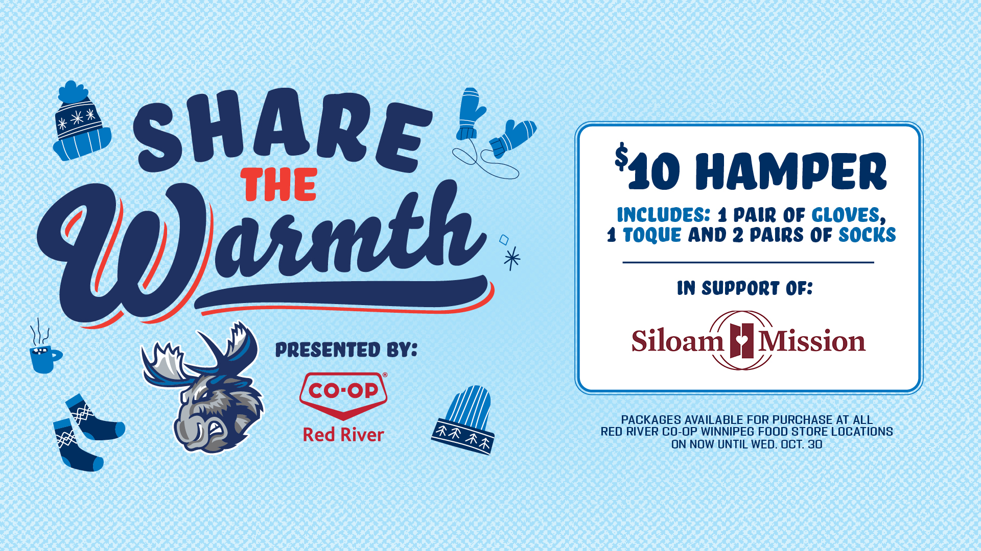 Tickets for the Share the Warmth game, presented by Red River Co-op, in support of Siloam Mission are available at MooseHockey.com/TICKETS.