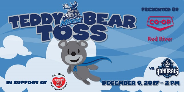 Tickets for the Manitoba Moose Teddy Bear Toss game presented by Red River Co-op on Saturday, Dec. 9 are available at moosehockey.com/tickets.