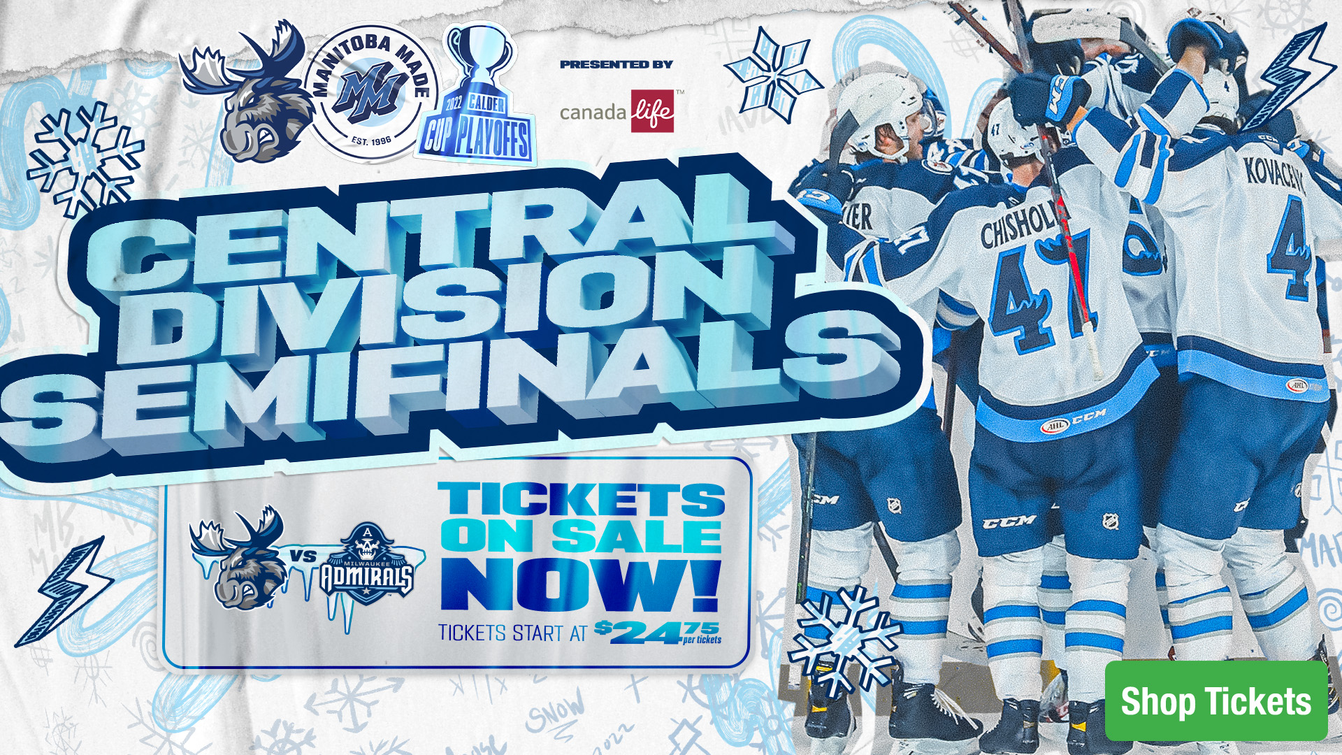 Single-game tickets for the Central Division Semifinals between the Manitoba Moose and Milwaukee Admirals are on sale now.