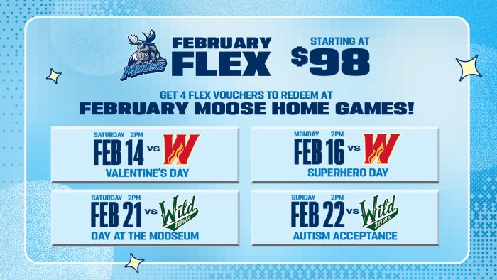 Craving live hockey this February? The Moose are holding down the ice while the Jets are away for the Olympic break. Score a February Flex Pack with 4 vouchers and choose the games that work for you.